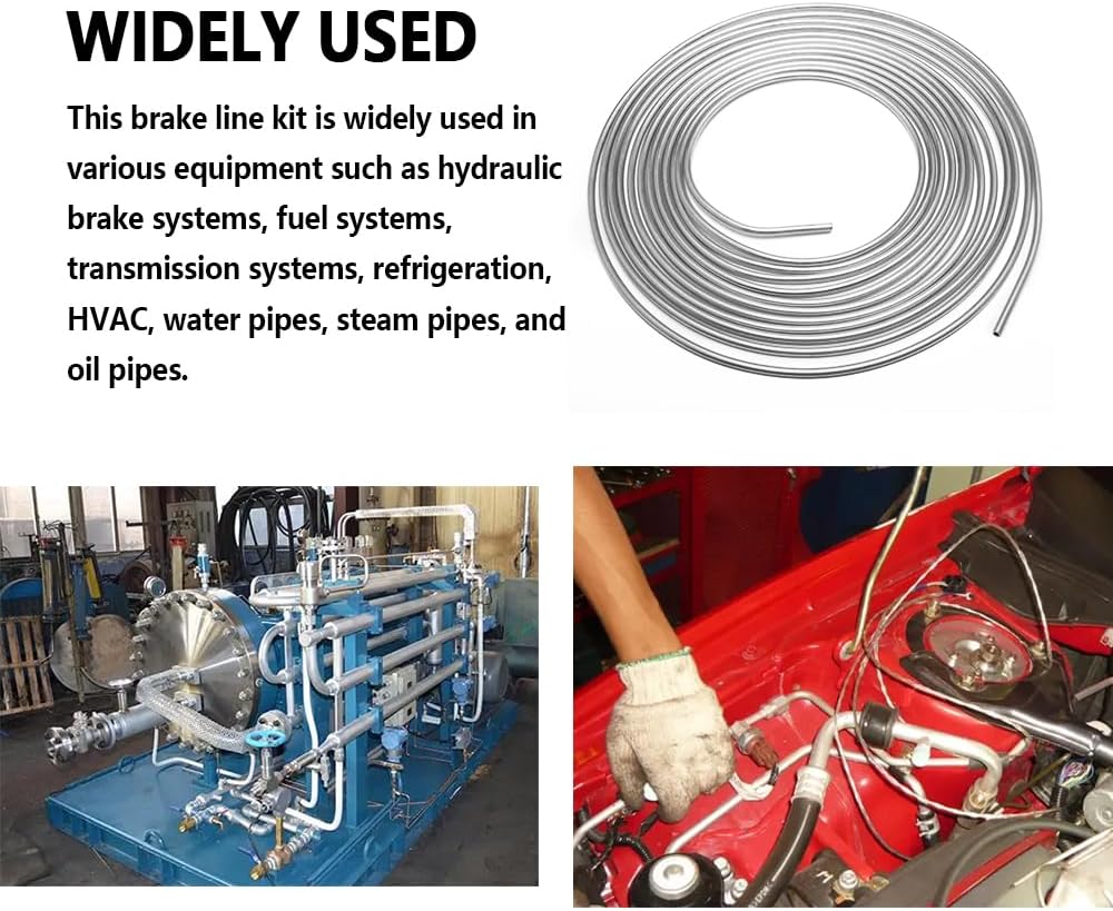 ⭐ 【Widely Used】 There must be many times when you need to use it in your daily life! This brake line kit is widely used in various equipment such as hydraulic brake systems, fuel systems, transmission systems, refrigeration, HVAC, water pipes, steam pipes, and oil pipes. Whether it’s a family, company, or factory, it’s essential to have a complete brake line kit!
