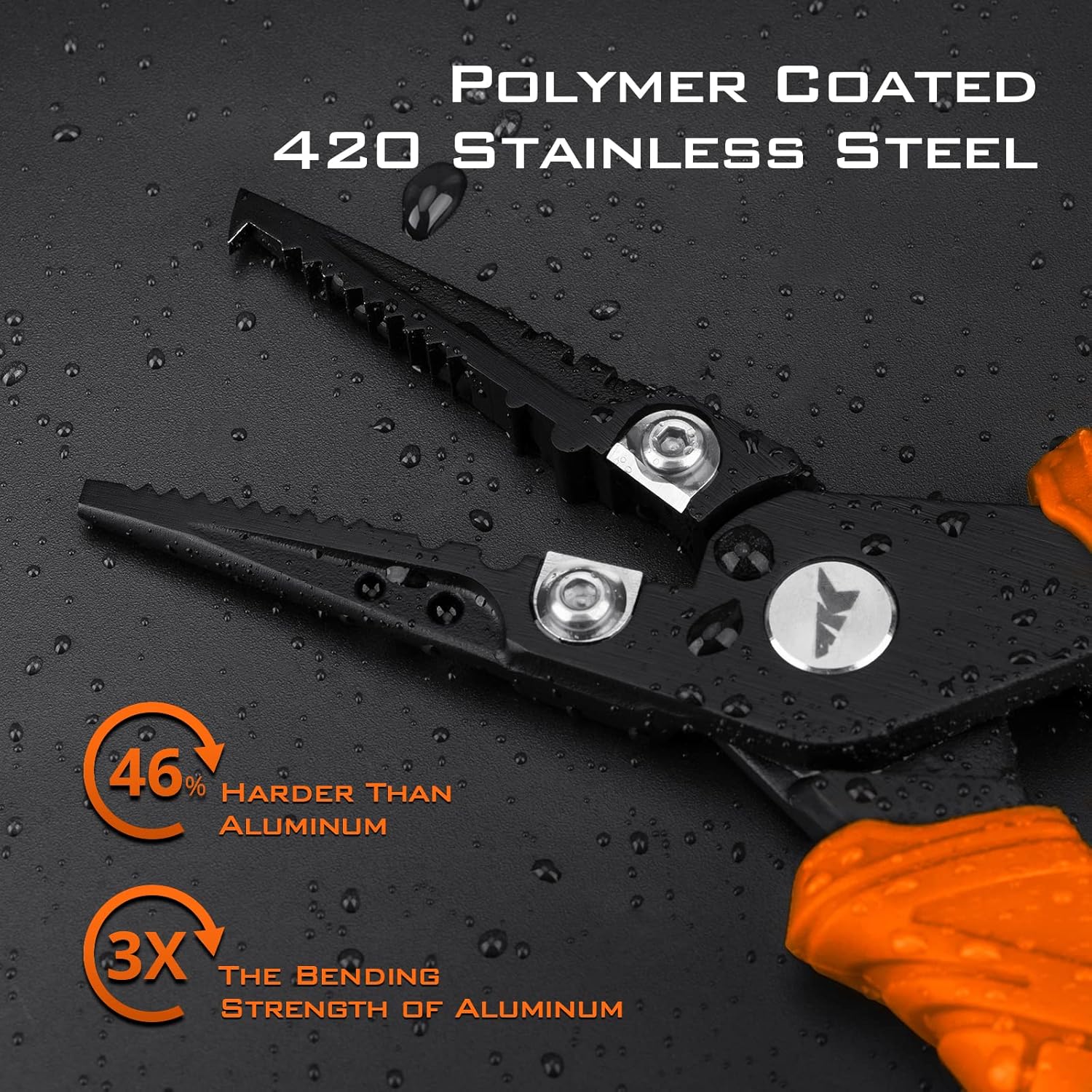 Corrosion Resistant Stainless-Steel – The 7-inch pliers are made from corrosion-resistant 420 stainless steel and coated with a tough, corrosion-resistant exterior polymer coating for added protection. Designed for long-term performance, these pliers are ideal for both freshwater and harsh saltwater environments.